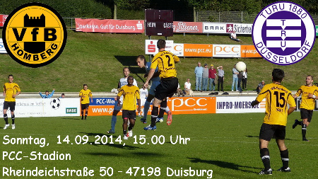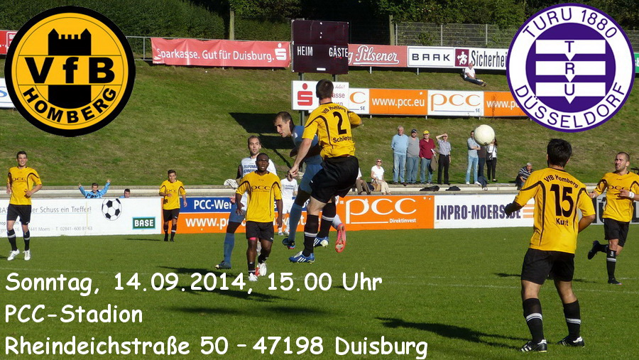Zum Duell der Kellerkinder erwartet der VfB Homberg am Sonntag TURU Düsseldorf im PCC-Stadion. Die Gäste aus der Landeshauptstadt rangieren mit einem Zähler auf dem vorletzten Tabellenplatz unmittelbar vor den punktlosen Gelb-Schwarzen, die beiden Teams sind die einzigen noch sieglosen Mannschaften der Oberliga. Da sich unsere Spieler zuletzt deutlich verbessert zeigten, darf man am Rheindeich durchaus optimistisch sein - aber auch die Oberbilker wollen endlich an die Leistungen der Vorsaison anknüpfen, als man in der Endabrechnung vor dem VfB Homberg den achten Tabellenplatz belegen konnte. Die direkten Duelle gingen übrigens beide zugunsten unserer Mannschaft aus, zu Hause traf Jura Adolf zum 1:0-Endstand, Cengizhan Erbay erzielte beim Rückspiel das goldene Tor. Auch im Pokal trafen die Teams aufeinander, ein Treffer von Almir Sogolj sowie ein Doppelpack von Sunay Acar sorgten im PCC-Stadion für einen 3:0-Heimsieg. Diesmal war im Niederrheinpokal für die beiden Kontrahenten vom Sonntag in der zweiten Runde Endstation: Während unsere Mannschaft 0:2 beim Ligarivalen Schwarz-Weiß Essen den Kürzeren zog, schied TURU Düsseldorf beim Landesligisten TV Kalkum-Wittlaer 1:2 aus. VfB-Trainer Günter Abel muß auf den letztmals gesperrten Daniele Kowalski verzichten, ansonsten stehen alle Spieler zur Verfügung.