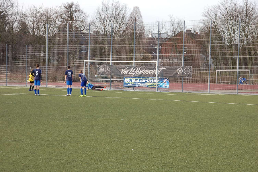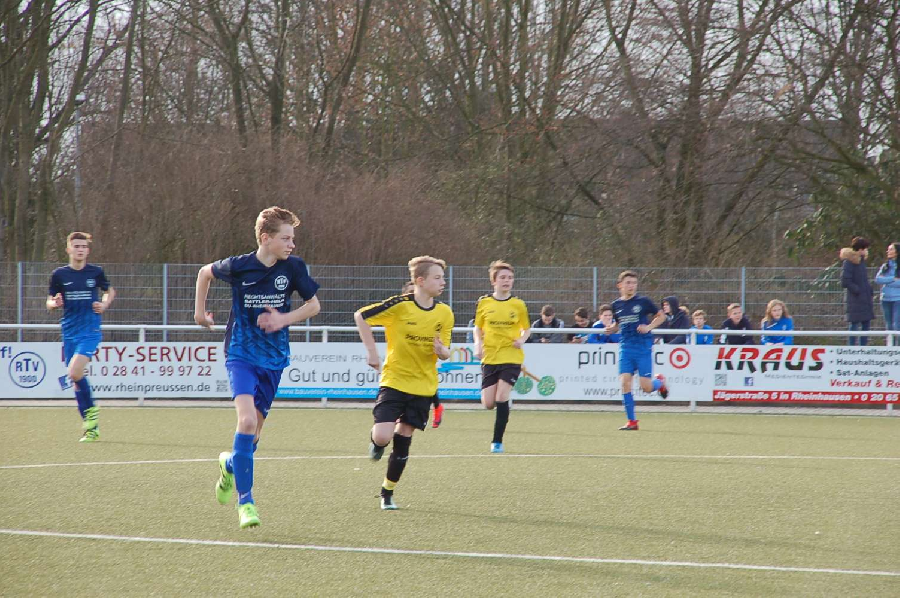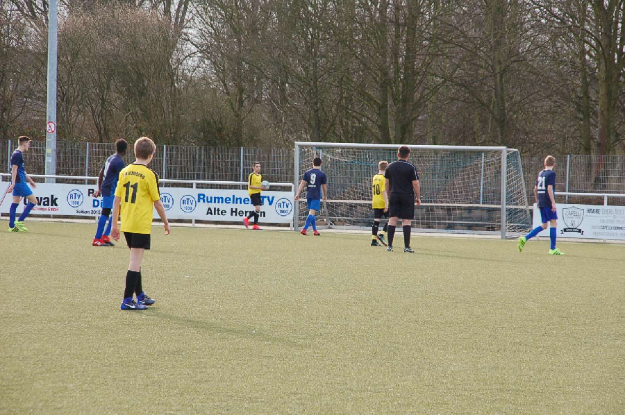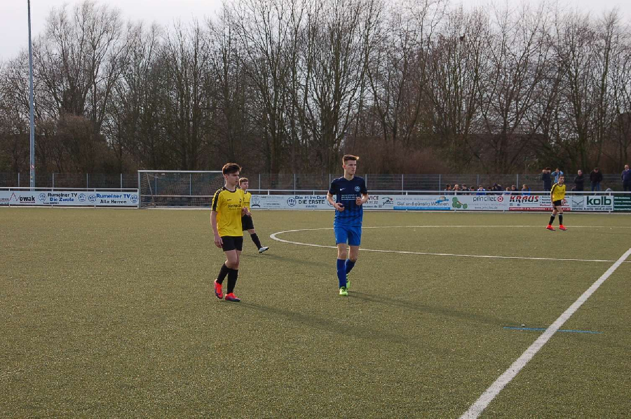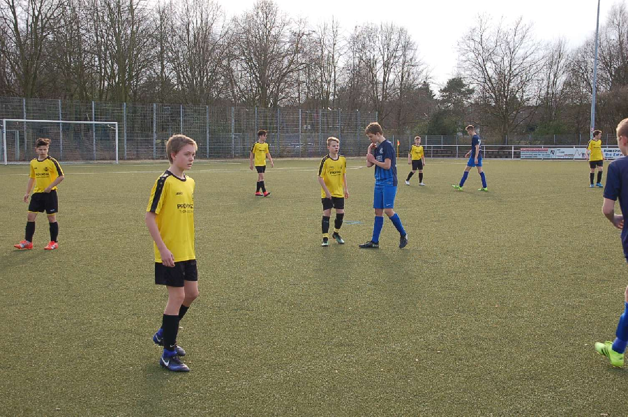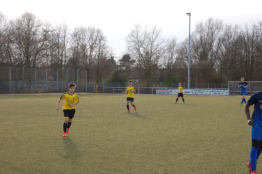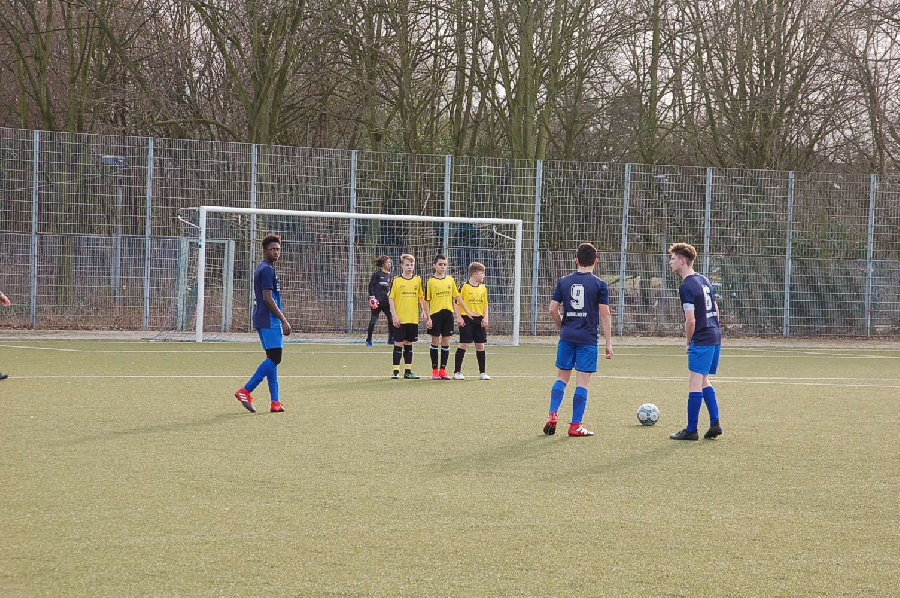 Heute ging es zum Tabellennachbarn zur C1 vom TV Rumeln. Wie schon im Hinspiel waren die Gastgeber unseren Jungs körperlich haushoch überlegen. Aber unsere Mannschaft kam gut in die Begegnung hinein und konnten früh mit 1:0 in Führung gehen. In der Folgezeit entwickelte sich ein ausgeglichenes Spiel wobei wir die Riesenchance zum zweiten Tor hatten. Leider sprang der Ball von der Unterkante der Latte zurück ins Feld. Nach einer Unordnung in der Defensive erzielten die Rumelner den Ausgleich. Kurze vor der Pause schwächte sich unsere Mannschaft völlig unnötig mit einer roten Karte wegen Nachtreten selbst. Mit dem 1:1 ging es dann in die Kabinen. Obwohl unsere Elf auch in der zweiten Halbzeit versuchte mit allen Kräften kämpferisch dagegen zu halten machte sich die körperliche Überlegenheit der Gastgeber immer stärker bemerkbar. Nach einem individuellen Fehler gingen die Gastgeber mit 2:1 in Führung. Per Elfmeter konnten wir nochmal ausgleichen aber bis zum Schlusspfiff erzielten die Rumelner nachdem die Kräfte bei uns immer mehr nachließen drei weitere Treffer.