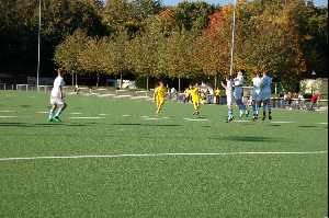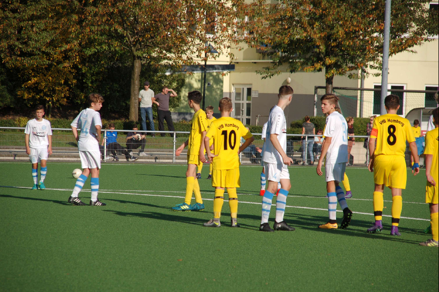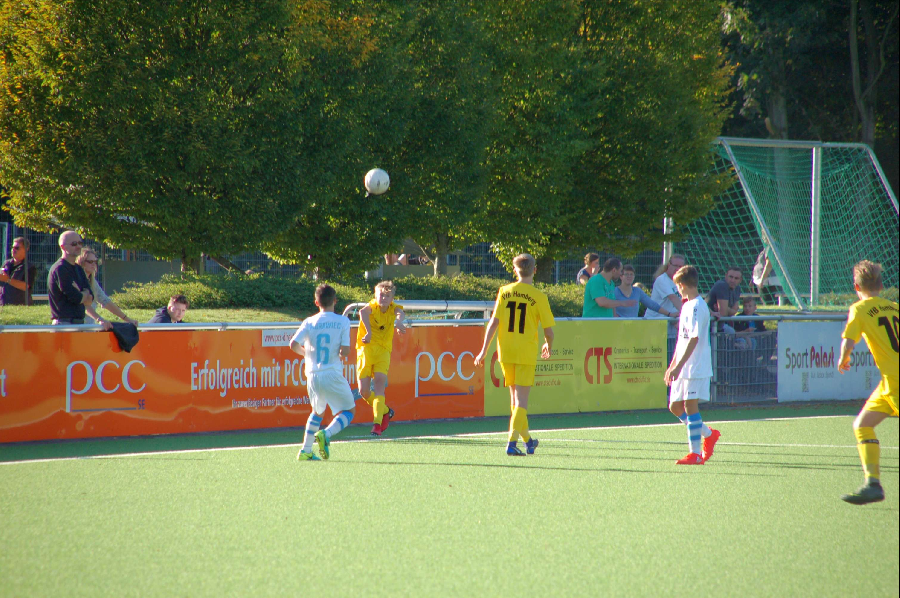 Heute empfingen wir die Gäste vom GSV Moers im Spiel des Tabellenführers gegen den Tabellenzweiten. Bei optimalem Fussballwetter waren die Verhältnisse recht schnell geklärt. Unseren Jungs war es anzumerken das Spiel unbedingt gewinnen zu wollen und so erzielten wir auch in den ersten 15 Minuten schnell zwei Tore. Auch danach hatten wir das Spiel jederzeit im Griff und waren klar überlegen. Allerdings spielten wir auch wie in der Vorwoche und im Pokal teilweise zu kompliziert und ungenau. Bei etwas mehr Konzentration und Genauigkeit im Spiel nach vorne wäre ein noch höherer Sieg möglich gewesen. So stand es dann am Ende der Partie 4:0 für unsere Jungs. Damit gehen wir mit sechs Siegen und einem Torverhältnis von 46:0 in die Herbstpause der Meisterschaftsrunde. Glückwunsch!
