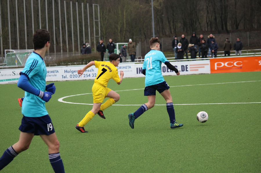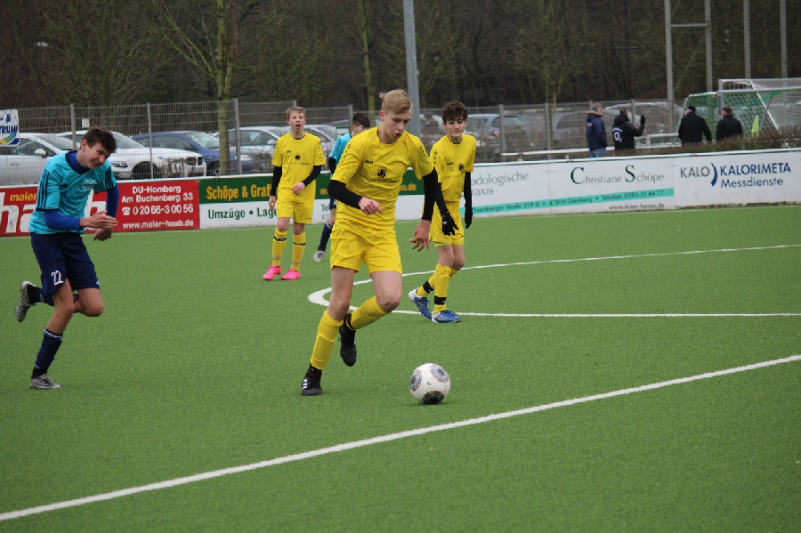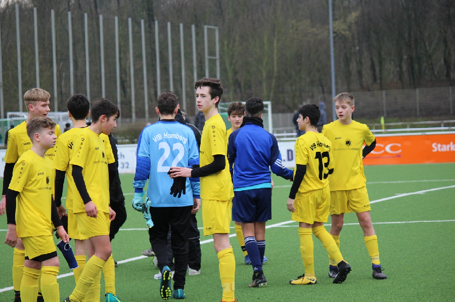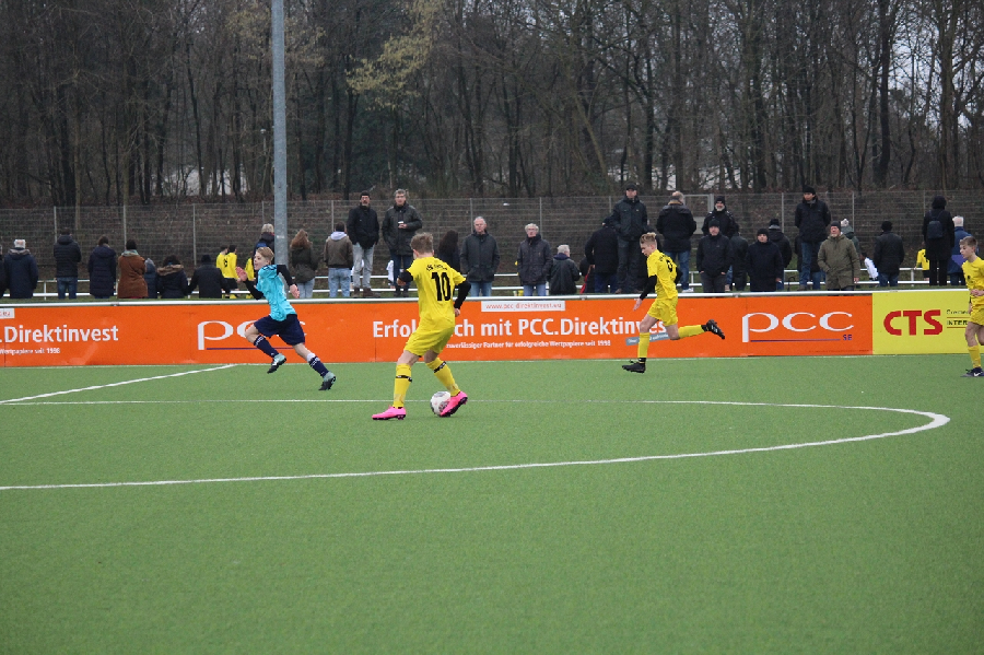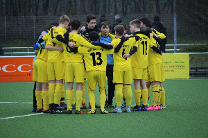 Nach dem klaren Sieg gestern in der Meisterschaft empfingen wir heute aus dem Fussballverband Westfalen die in der Landesliga(wie bei uns Niederrheinliga)spielende C1 vom TSV Marl-Hüls. Über die gesamte Spielzeit sahen die Zuschauer ein gutes Spiel beider Mannschaften. Die erste Hälfte gestaltete sich recht ausgeglichen mit Torchancen auf beiden Seiten. Allerdings konnte nur eine dieser von uns genutzt werden und so gingen wir mit einer knappen Führung in die Halbzeit. Der Beginn der zweiten Hälfte war weiter ausgeglichen aber mit zunehmender Spieldauer wurden unsere Jungs überlegener und wir konnten das Ergebnis bis auf 3:0 erhöhen. Dabei blieb es bis zum Schlusspfiff. Insgesamt ein verdienter Sieg unserer Jungs gegen einen starken Gegner. Glückwunsch!
