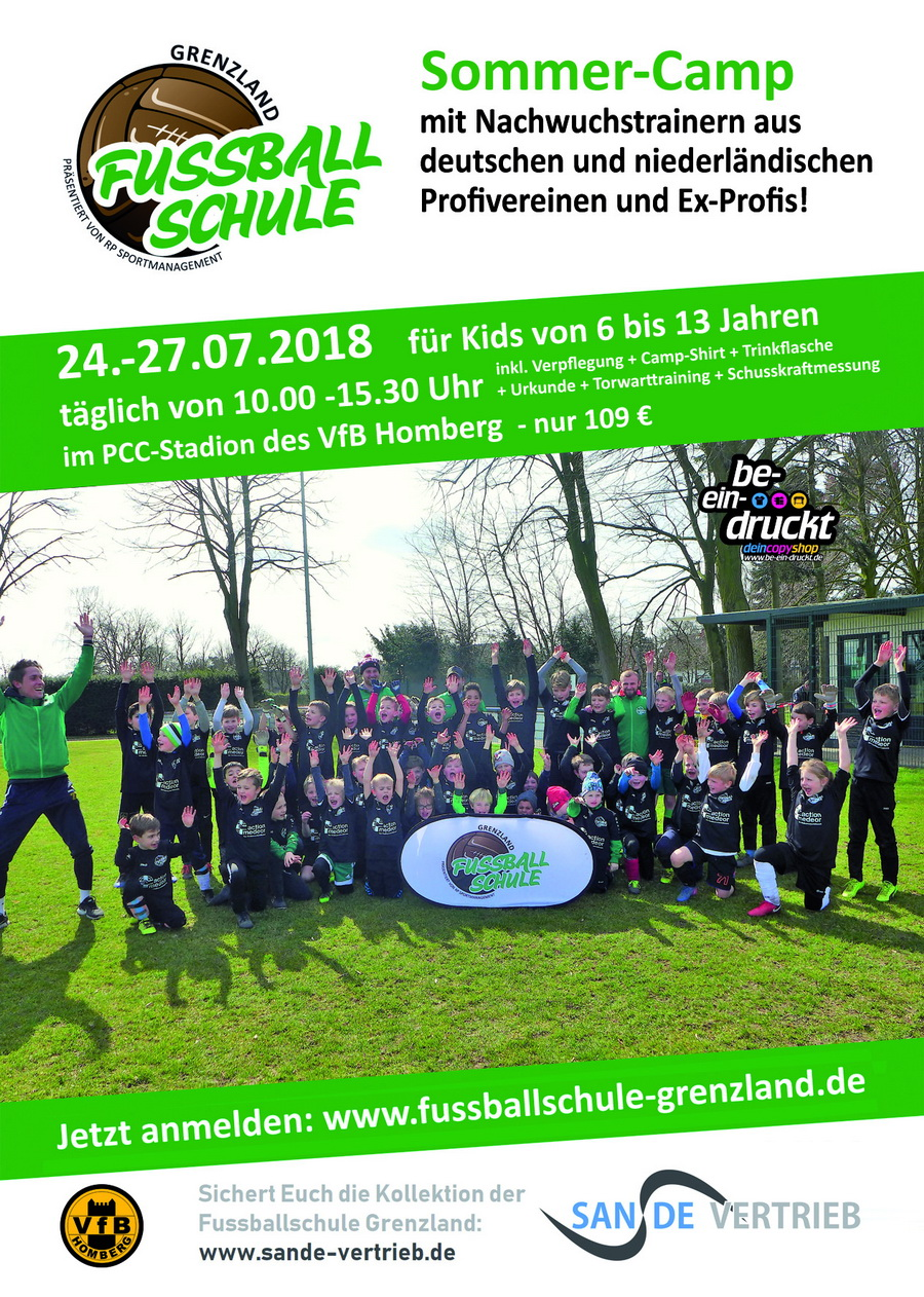 In den Sommerferien findet bekanntlich vom 24. bis zum 27.07.2018 im PCC-Stadion des VfB Homberg ein Fußballcamp der Fussballschule Grenzland statt.
