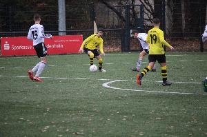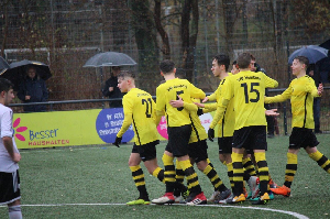 Heute ging es zum Tabellenzweiten dem ewigen Rivalen vom SV Budberg. Bei Dauerregen und einer beachtlichen Zuschauerzahl zeigten unsere Jungs insgesamt eine sehr starke Leistung. Taktisch wurde das Besprochene mit einer hohen Laufbereitschaft sehr gut umgesetzt. Dennoch war die erste halbe Stunde noch relativ ausgeglichen und die Gastgeber gingen nach einer Unaufmerksamkeit nach 20 Minuten in Führung. Unsere Jungs zeigten sich aber nicht geschockt und erzielten kurz vor der Pause den verdienten Ausgleich. In der zweiten Hälfte konnten wir innerhalb von 15 Minuten nach schön heraus gespielten Angriffen auf 4:1 davon ziehen. Zudem wurde unsere läuferische Überlegenheit immer deutlicher und unser Team war in der zweiten Hälfte klar spielbestimmend. Hinten ließen wir auch nicht mehr viel zu und in der Schlussminute erzielten wir sogar einen weiteren Treffer zum 5:1 Endstand. Ein dann auch in dieser Höhe aufgrund der zweiten Halbzeit hoch verdienter Sieg nach einer geschlossenen Mannschaftsleistung. Glückwunsch!