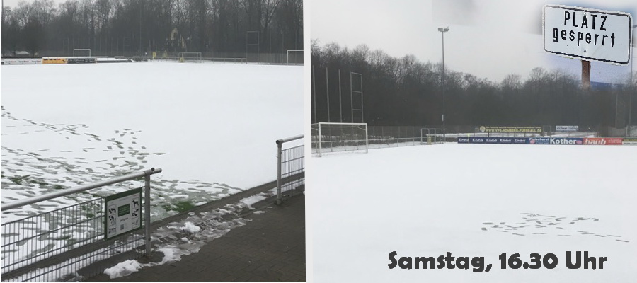 Alle für Sonntagvormittag angesetzten Heimspiele unserer Juniorenmannschaften können nicht stattfinden, auch das Testspiel der "Dritten" muß leider ausfallen. Ob unsere erste Mannschaft um 15.00 Uhr gegen Rot-Weiß Oberhausen spielen kann, werden wir morgen Vormittag entscheiden. Noch besteht Anlaß zur Hoffnung, daß die Schneeschicht vielleicht doch wegschmilzt.