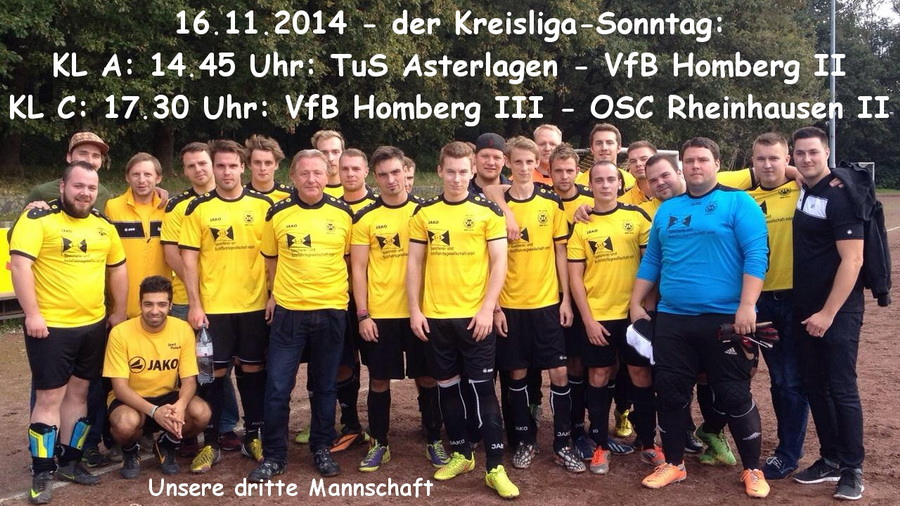 Sonntag, 16.11.2014 / 17.30 Uhr: VfB Homberg III - OSC Rheinhausen II (PCC-Stadion)