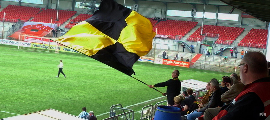 Das letzte Gastspiel des VfB Homberg bei Rot Weiss Ahlen fand am 29.04.2012 im Rahmen der NRW-Liga statt - vor 419 Zuschauerinnen und Zuschauern, darunter mitgereiste VfB-Fans (siehe Foto), der damalige Kapitän Sunay Acar mußte verletzt pausieren. Der unvergessene Almir Sogolj, der schon im Hinspiel das goldene Tor erzielt hatte, brachte seine Farben früh in Führung, am Ende aber behielten die Gastgeber mit 2:1 die Oberhand. Das soll sich nicht wiederholen, vielmehr will das Team von Chefcoach Sunay Acar das Jahr mit einem Erfolgserlebnis abschließen. Dementsprechend konzentriert und engagiert wird man zu Werke gehen, bevor man sich hoffentlich gut gelaunt auf die 116 Kilometer lange Rückreise an den Rheindeich macht.