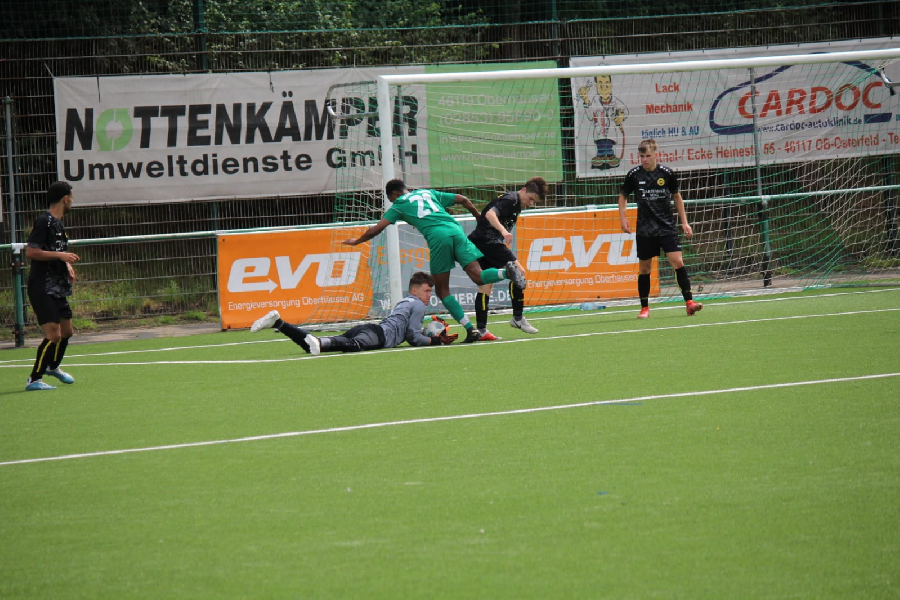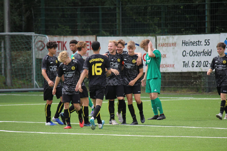 Nachdem beide Gegner kurzfristig abgesagt haben vereinbarte unsere U19 kurzfristig ein Testspiel beim Ligakonkurrenten Arminia Klosterhardt. Trotz des gestrigen Spiels, einigen Ausfällen und Doppelbelastung vieler Spieler zeigte unsere Mannschaft heute insgesamt eine starke Vorstellung. Von Anfang an bestimmten wir die Begegnung und das Spiel fand zumeist in der Hälfte der Gastgeber statt. Allerdings gingen diese mit dem ersten Schuß auf unser Tor überraschend in Führung. Doch unsere Jungs zeigten sich unbeeindruckt und drehten die Begegnung bis zur Pause in eine 2:1 Führung. Zu Beginn der zweiten Hälfte das gleiche Bild und daher konnten wir schnell auf 3:1 erhöhen. Obwohl dann im Laufe der zweiten Halbzeit die Kräfte erwartungsgemäß nachließen und wir wieder durchwechselten behielten wir die Ordnung, spielten diszipliniert und zeigten ein gutes Zweikampfverhalten. Dadurch ließen wir hinten wenig zu und vorne konnten wir sogar unseren vierten Treffer erzielen. Letztendlich ein verdienter 4:1 Erfolg unserer Elf. Glückwunsch!