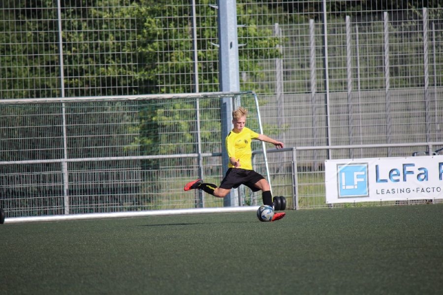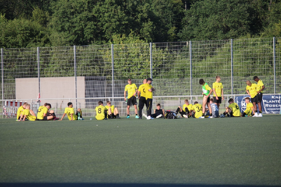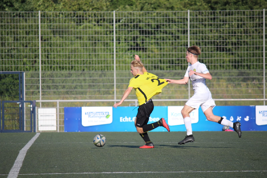 Heute absolvierte unsere U19 das nächste Testspiel in Germania Ratingen. Bei sommerlichen Temperaturen sahen die Zuschauer zwei unterschiedliche Halbzeiten. In der ersten war es ein gutes Spiel zweier Niederrheinligisten. Beide Mannschaften spielten mit hohem Tempo. Unsere Jungs spielten geordnet mit starken läuferischen Einsatz. Zudem gewannen sie die Mehrzahl der vielen intensiven Zweikämpfe und hinten ließ man nicht viel zu. Zur Pause führte unsere Elf verdient mit 1:0. Bei konsequenterer Chancenverwertung wäre eine noch höhere Führung möglich gewesen. Nach sechs Wechsel in der Halbzeit änderte sich leider das Spielgeschehen zugunsten der Gastgeber. Auf einmal verloren wir die meisten Zweikämpfe und die Ordnung in unserem Spiel ging auch verloren. So drehten die Ratinger die Begegnung noch und gewannen insgesamt, vielleicht um ein Tor aufgrund der ersten Hälfte zu Hoch, mit 3:1.