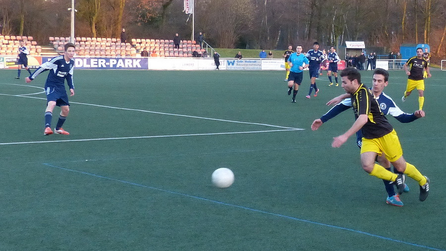 Die erste erwähnenswerte Situation brachte die Führung für die Gastgeber, nach einem schönen Angriff über die rechte Seite ließ Marcel Vogel Keeper Fabian Groß keine Abwehrchance. Manuel Augenstein verhinderte kurz danach auf der Linie den Ausgleich, für den zehn Minuten später Eric Holz sorgte: Nach einer abgewehrten Ecke von Oguzhan Cuhaci brachte Almir Sogolj den Ball vor das Tor, Holz setzte sich resolut durch und beförderte den Ball ins Netz. Nach dem Wiederanpfiff waren zunächst zwei Abseitstore der Nordler zu verzeichnen und Torhüter Dominik Weigl parierte zweimal stark gegen Hilal Ali Khan. Dann bereitete Tolga Dügencioglu mit einer perfekten Flanke aus vollem Lauf das 1:2 vor, Almir Sogolj köpfte das runde Leder aus zehn Metern plaziert ins Toreck. Athanasios Mitrentsis hätte nach Zuspiel von Sunay Acar erhöhen können, scheiterte aber am aufmerksamen Torwart der Sportvereinigung. So blieb es bei eisigen Temperaturen beim 1:2.