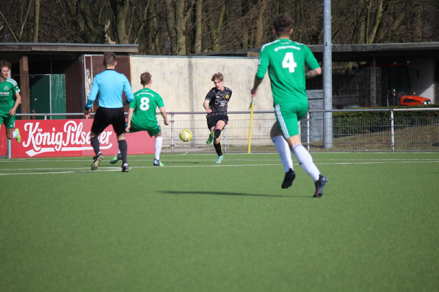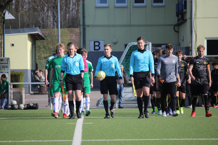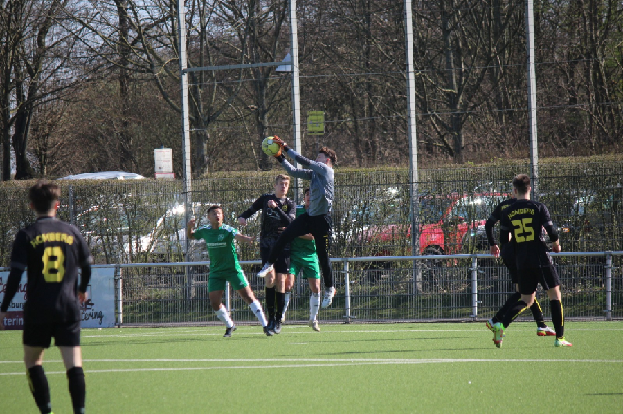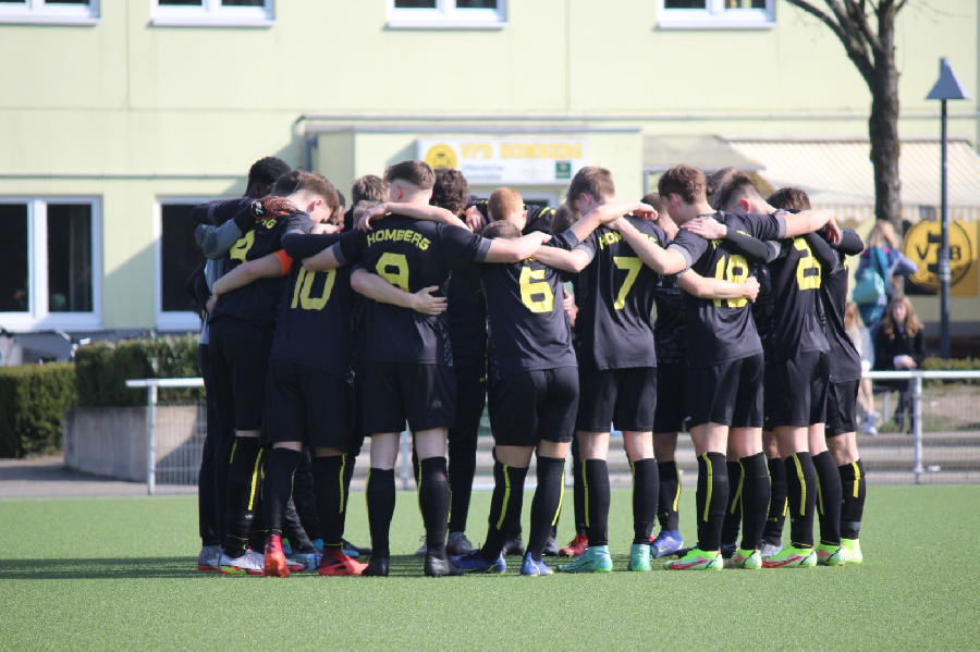 Heute empfingen wir die U19 von Arminia Klosterhardt. Ein wichtiges Spiel für beide Mannschaften um Platz 4 der zum direkten Klassenerhalt reicht. Dementsprechend motiviert war unsere Mannschaft die drei Punkte in Homberg zu halten. Und es fing gut an. Von Anpfiff an waren wir gut im Spiel drin und bereits nach zwei Minuten konnte die 1:0 Führung erzielt werden. Auch in der Folgezeit war unser Team klar spielbestimmend und hatte Chancen das Ergebnis deutlich zu erhöhen. Erst kurz vor der Pause kamen die Gäste mal gefährlich vor unser Tor. So ging es nur mit einer knappen Führung in die Pause. In der zweiten Hälfte kippte das Spiel. Klosterhardt erhöhte mit ihrer starken Offensive den Druck und gleichzeitig verloren wir nun die Mehrzahl der Zweikämpfe. So kam Klosterhardt nach einer Standardsituation in der 76. Minute zum Ausgleich. Postwendend erzielte unsere Mannschaft wieder die Führung. Der Schiedsrichter entschied auf Tor aber der Linienrichter sah ein Handspiel. Bis zum Ende der Partie hatten dann beide Mannschaften noch die Möglichkeit ein Tor zu erzielen. Letzendlich blieb es aber bis zum Ende aufgrund zweier unterschiedlicher Halbzeiten beim leistungsgerechten 1:1 Unentschieden.