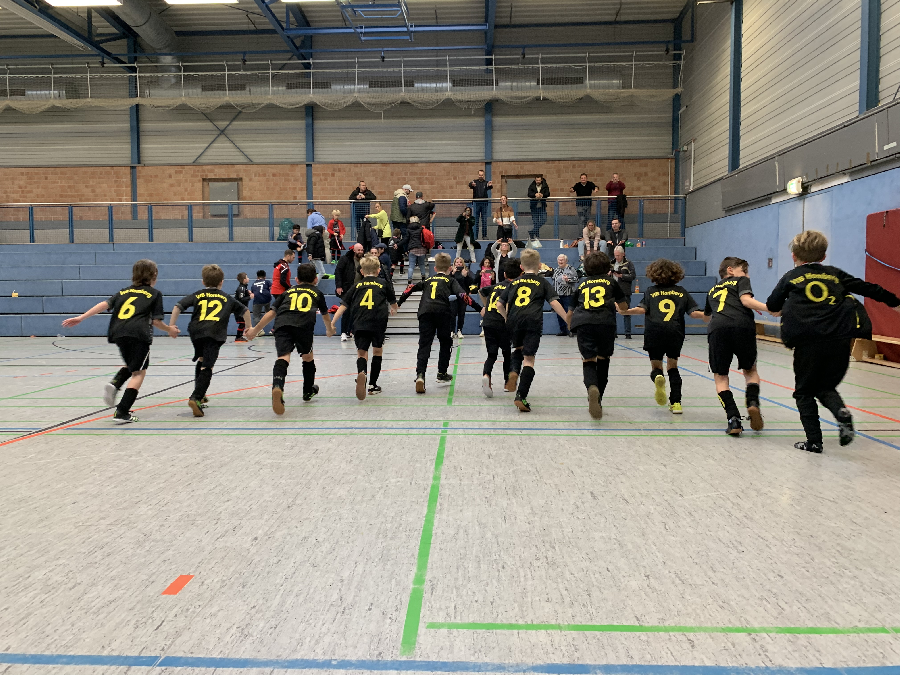 Mit diesem Rückenwind konnte auch das letzte Gruppenspiel verdient gewonnen werden. Im Halbfinale ging es dann gegen den spielstarken Gruppenersten der anderen Gruppe, die F1 vom GSV Moers, der mit einer durchgängig konzentrierten Leistung verdient niedergekämpft werden konnte.