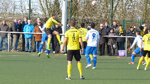 Nach dem Seitenwechsel dauerte es nur fünf Minuten, bis die Partie entschieden war. Erhan Zent und Milko Trisic spielten die Homberger Abwehr schwindelig, Marvin Mühlhause traf perfekt ins Eck. Die Gäste ließen die Köpfe nicht hängen, Jura Adolf und Sebastian Schweers tauchten mehrfach gefährlich vor dem Velberter Tor auf, auch Athanasios Mitrentsis und Patrick Polk hatten Chancen. Doch Treffer fielen nur auf einer Seite, Kevin Hagemann traf aus dem Hinterhalt exakt neben den Pfosten zum 4:0. Vor dem 5:0 spazierte Christian Schlösser durch die Abwehr der Gelb-Schwarzen, Philipp Schmidt drückte den Ball über die Linie. Almir Sogolj hatte zweimal den Ehrentreffer auf dem Fuß, einmal landete der Ball auf der Latte, das andere Mal reagierte Keeper Sprenger glänzend. So stand am Ende eine deutliche Niederlage zu Buche, die aber zu hoch ausgefallen war. Positiv muß angemerkt werden, daß sich der VfB Homberg durchaus anders präsentierte als in der Hinrunde. Vor allem zeigten sich die VfB-Spieler diszipliniert, Lamentieren, Reklamieren und Diskussionen mit dem Schiedsrichter überließ man den Gastgebern, die sich auch in dieser Hinsicht "meisterlich" zeigten...