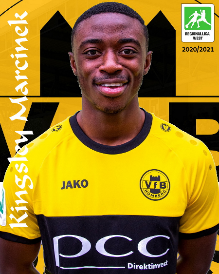 Zwei Spielzeiten war Kingsley Marcinek für den VfB Homberg in der Regionalliga West aktiv, 2020/21 und 2021/22 stand er in 51 Begegnungen auf dem Feld und erzielte dabei vier Tore. Der gebürtige Dortmunder wechselte nach dem VfB-Abstieg zur zweiten Mannschaft von Fortuna Düsseldorf und bestritt für die Landeshauptstädter 23 weitere Partien in der vierten Liga. Im Sommer 2023 schloß sich der 1,85 Meter große Defensivspieler, der seine Dynamik aber auch offensiv einbringen kann, dem Homberger Ligarivalen TVD Velbert an. Dort brachte er es auf drei Einsätze in der Oberliga und ein Spiel im Niederrheinpokal - weitere werden nicht mehr dazu kommen: Marcinek hat seinen Vertrag bei den Grün-Weißen aufgelöst und heute beim VfB Homberg unterschrieben, er ist damit nach Ryo Iwata der zweite Winterneuzugang für das Team von Trainer Stefan Janßen.
