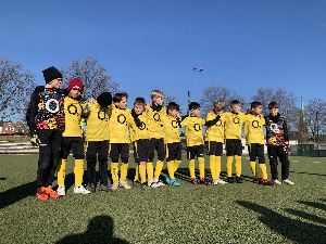 Die Jungs in schwarz-gelb nahmen sich die Worte zu Herzen. Deshalb entwickelte sich in Halbzeit zwei ein Spiel auf ein Tor. Mit großem Kampf und gutem Passspiel wurde eine Chance nach der anderen herausgespielt. In der 37. Minute wurde der Einsatz erstmals belohnt, als Emil nach einem tollen Dribbling auf Mirza durchsteckte, der eiskalt zum 3:1 versenkte. Der Treffer zeigte beim Gegner offenbar Wirkung, da dieser im Anschluss noch härter in die Zweikämpfe ging und vermehrt den Ball bewusst zum Zeitspiel wegschoss. Doch unsere Jungs zeigten sich unbeeindruckt. Insbesondere unsere Abwehr um Luca, Phil, Linus und Muhammed hat sich für ihr Dagegenhalten heute ein dickes Lob verdient. Das zweite Mal belohnt wurden die Kicker in schwarz-gelb in der 47. Minute, als Mohamad nach einer Ecke von Matthias mit einem sehenswerten Kopfball in das lange Eck zum 3:2 Anschluss einnetzen konnte. Und zwei Minuten vor Schluss konnte Mohamad dann nach einer abgefangenen Ecke einen Konter am Torwart vorbei zum verdienten 3:3 im Tor unterbringen (58.). Unsere Kicker hatten aber noch nicht genug und konnten 30 Sekunden vor Schluss, nach schönem Kombinationsspiel und Vorlage von Emil, noch den Siegtreffer bejubeln, als Matthias den Ball mit einem satten Linksschuss in die Maschen drückte (60.).