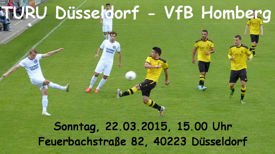 Nach dem hart erkämpften 3:3 gegen die Sportfreunde Baumberg, mit dem der Abstand auf das rettende Ufer ein klein wenig reduziert werden konnte, geht es für unsere Oberliga-Mannschaft am Sonntag bei TURU Düsseldorf weiter. Die Gastgeber stehen derzeit auf dem dreizehnten Platz, der Abstand auf die Abstiegsränge beträgt sieben Punkte. Das Team von Trainer Frank Zilles, der Anfang der Woche seinen Vertrag bis 2016 verlängert hat, ist also längst nicht aller Sorgen ledig und will das Heimspiel gegen den Tabellenletzten unbedingt gewinnen. Wenn unsere Mannschaft an die kämpferischen Leistungen der letzten Spiele anknüpfen kann, ist man aber keineswegs chancenlos. Beim Hinspiel, das trotz einer 1:0-Pausenführung durch Cengizhan Erbay 1:3 verloren wurde, waren die Gelb-Schwarzen das bessere Team - wenn die Fehlerquote endlich reduziert wird, sollte man nicht mit leeren Händen aus der Landeshauptstadt zurückkehren. Im Vorjahr siegte der VfB Homberg zweimal mit 1:0 gegen TURU, am Rheindeich war Jura Adolf der Torschütze, auswärts traf damals Cengizhan Erbay.