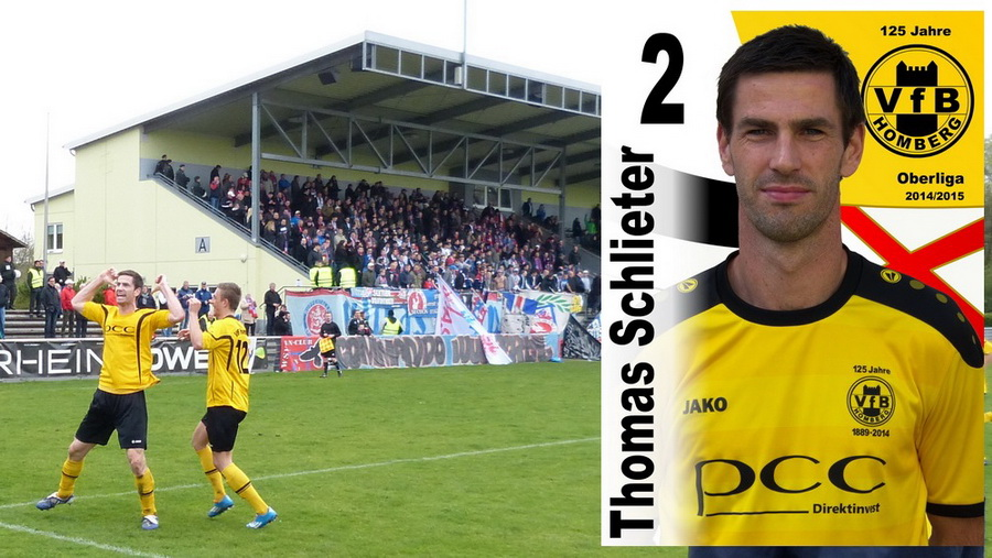 Der gebürtige Duisburger Schlieter konnte seine größten Erfolge bei Rot-Weiß Oberhausen feiern, er gehörte zu dem Team, das den Durchmarsch von der vierten in die zweite Liga schaffte. Dort lief er in drei Jahren 82 mal für die Kleeblätter auf, nach einem zweijährigen Gastspiel beim Wuppertaler SV wechselte er 2013 zum VfB Homberg. Nicht nur für die jungen Spieler ist Thomas Schlieter ein großes Vorbild, als „Leitwolf“ wird er auch in der kommenden Saison eine wichtige Rolle bei den Gelb-Schwarzen spielen.