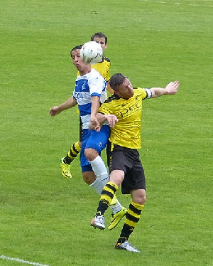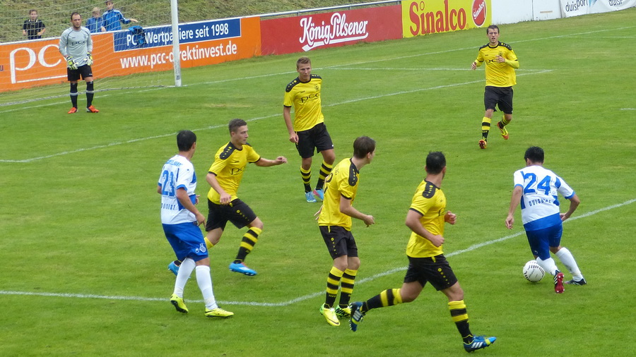 Sportlich begannen die Gastgeber wie die Feuerwehr: Der Anstoß führte zum ersten Angriff und einem Foul im MSV-Strafraum an Neuzugang Hakan Dönmez. Der Angreifer schoß selbst, vergab aber. Im weiteren Verlauf der Partie erwiesen sich die Gelb-Schwarzen weitgehend auf Augenhöhe mit den Profis, auch wenn die Gäste die besseren Chancen hatten. Doch alle drei VfB-Keeper erwiesen sich als Meister ihres Faches, das späte Gegentor war für Youngster Fabian Groß, der in der Schlußphase mehrere spektakuläre Paraden zeigte, unhaltbar. Vor dem MSV-Tor vergaben Hakan Dönmez und Ognjen Petrovic die vielversprechendsten Möglichkeiten.