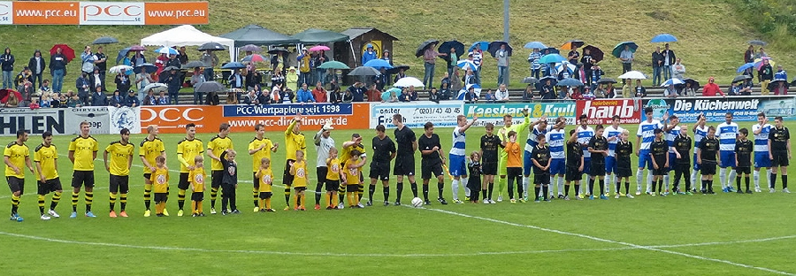 Zum ersten Vorbereitungsspiel auf die Saison 2014/2015 gab sich heute Drittligist MSV Duisburg im PCC-Stadion des VfB Homberg die Ehre, bei unfreundlichen äußeren Bedingungen entsprach die Zuschauerzahl nicht den Erwartungen: 879 Besucherinnen und Besucher waren beim Stadtderby zugegen.