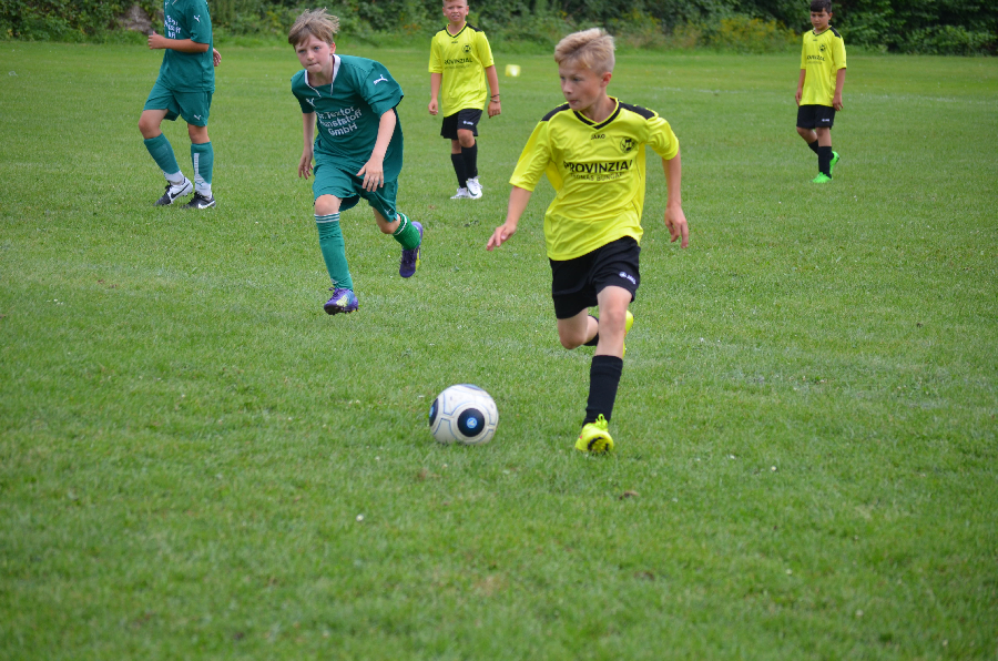 Ein insgesamt erfolgreiches Wochenende absolvierte unsere U13 im Rahmen ihrer Saisonvorbereitung. Samstag absolvierte man am heimischen Platz ein Tagestrainingslager. In der Früh traf man sich zu einer Laufeinheit am Rhein entlang und anschließend frühstückte man gemeinsam. Danach absolvierte man eine Trainingseinheit auf dem Platz. Abschließend stand nach dem Mittagessen ein Testspiel gegen den VfB Speldorf auf dem Programm. Trotz schwerer Beine zeigte unsere Elf nach kurzen Anlaufschwierigkeiten ein ansehnliches Spiel mit guter Ordnung und Raumaufteilung und siegte auch in der Höhe verdient mit 5:2. Sonntag nahm man dann an einem Turnier in Bissingheim teil. Trotz des anstrengenden Vortages setzte sich unsere Mannschaft in der Vorrunde als erster durch und zog in das Endspiel ein. Auch hier war man gegen die Mannschaft von TSV Auf der Höhe Solingen das klar bessere Team. So führte man bis zur letzten Spielminute mit 1:0. Leider versäumte es unsere Mannschaft das Ergebnis trotz klarer Chancen auszubauen. Als sich alle schon auf den Turniersieg freuten erzielten die Solinger mit ihrem ersten gut vorgetragenen Angriff plötzlich den Ausgleich. So musste das Elfmeterschießen die Entscheidung bringen. Hier war das Glück dann leider nicht auf unserer Seite. Während wir zwei Elfmeter nicht ins Tor unterbringen konnten verwandelten die Solinger recht souverän ihre Elfmeter und holten sich letzendlich etwas glücklich den Turniersieg. Glückwunsch dazu von unserer Seite! Weiter geht es dann am Dienstag mit einem Testspiel in Krefeld -Bockum und am Samstag nimmt man nach zwei Trainingseinheiten am Donnerstag und Freitag am Vorbereitungsturnier in Sonsbeck teil.