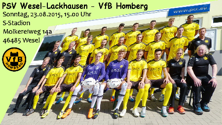 Nach dem 1:1 im Auftaktspiel gegen den Duisburger SV 1900 steht für unsere Landesliga-Mannschaft am Sonntag die erste Auswärtsaufgabe auf dem Programm, der PSV Wesel-Lackhausen erwartet den VfB Homberg auf dem Rasenplatz des S-Stadions. Die Gastgeber haben am vergangenen Sonntag beim 1. FC Kleve deutlich mit 7:2 verloren und tragen die rote Laterne, doch in der frühen Saisonphase hat das nicht viel zu sagen. Nachlässigkeiten darf sich unser Team keinesfalls erlauben, auch darf man keinen Gegner auf die leichte Schulter nehmen. Wenn man das beherzigt, dabei weiter so Fußball spielt wie in Vorbereitung, Pokal und Meisterschaft und die - verständliche - Anfangsnervosität ablegen kann, dann werden die Homberger Fans auf den ersten Saisonsieg nicht lange warten müssen.