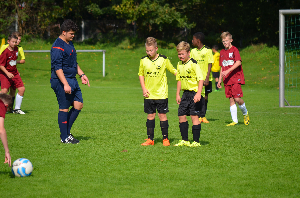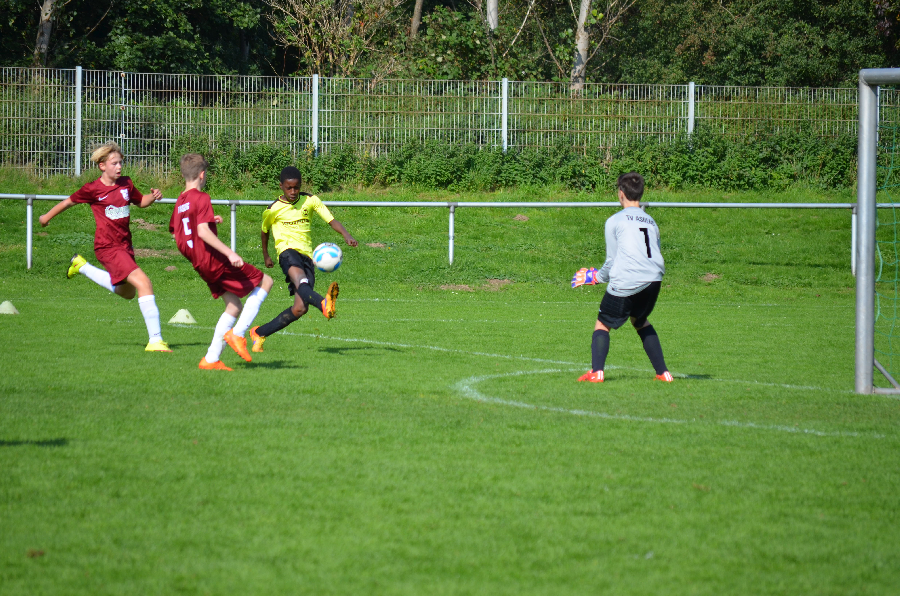 Das erwartet schwere Spiel in Asberg gewann unsere Mannschaft letzendlich knapp mit 1:0. Wir waren zu Beginn gut im Spiel und hatten schnell zwei Torchancen die aber nicht verwertet werden konnten. In der Folgezeit waren wir zwar optisch überlegen jedoch blieben die Gastgeber mit ihren langen Bälle in die Spitze immer gefährlich. In der 20. Minute kombinierten wir über mehrere Stationen schön nach vorne und erzielten dadurch die Führung. Bis zur Pause passierte dann nichts mehr. In der zweiten Halbzeit versuchten die Asberger weiter mit langen Bällen nach vorne zu Gelegenheiten zu kommen. Unsere Elf hielt Defensiv gut dagegen und ließ keine klare Torchancen zu. Allerdings konnten wir uns in der Offensive nicht mehr entscheidend durchsetzen und verpassten dadurch vielleicht die Vorentscheidung. So blieb es bis zum Schlusspfiff spannend denn die Asberger versuchten nochmal mit allen Mitteln zum Ausgleich zu kommen. Letzendlich konnten wir aber die Null hinten halten und wir holten uns gegen gute Gastgeber den sechsten Sieg im sechsten Spiel! Glückwunsch!