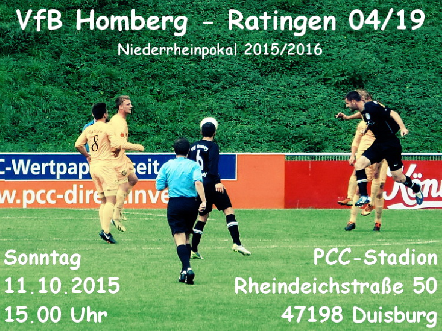 Was geht am Sonntag? Mit dem Oberligisten Ratingen 04/19 empfängt unsere Landesliga-Mannschaft in der zweiten Runde des Niederrheinpokals einen "schweren Brocken", die Gäste rangieren derzeit im Tabellenmittelfeld und sind natürlich favorisiert. Nach vier siegreichen Meisterschaftsspielen gibt es für das Team um Kapitän Thomas Schlieter aber keinen Grund sich zu verstecken, das Publikum darf sich auf einen spannenden Vergleich zwischen den letztjährigen Ligarivalen freuen. In der ersten Runde waren die Ratinger schon einmal in der Gegend, der VfL Rheinhausen wurde mit 3:0 bezwungen. Unser Team behielt gleichzeitig beim TSV Wachtendonk-Wankum mit 4:1 die Oberhand, Marcel Kalski steuerte damals - wie am vergangenen Mittwoch in Hönnepel-Niedermörmter - drei Treffer bei.