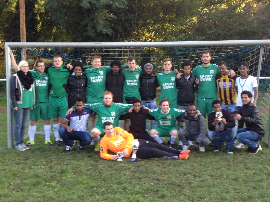 Am vergangenen Samtag, den 10.10.2015 hat unser Team unter den Teamnamen VfB Liberty Eritrea als eines von 2 Teams mit Flüchtlingen sein erstes Turnier auf Einladung der MSV-Fanclubs auf der Sportanlage des Ruhrorter TV gespielt. 4 Unentschieden, 1 Niederlage und der torreichste Sieg des Turniers mit 7:0, sowie der 3. Platz in der Gruppe 2 standen zu Buche. Von insgesamt 14 Mannschaften wurde damit ein beachtlicher 7. Platz erreicht und wir alle hatten eine Menge Spaß.