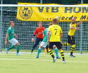 Es war wie so oft in dieser Saison: Ein kämpferisch starker VfB Homberg läßt vorne zu viele Torchancen aus und...