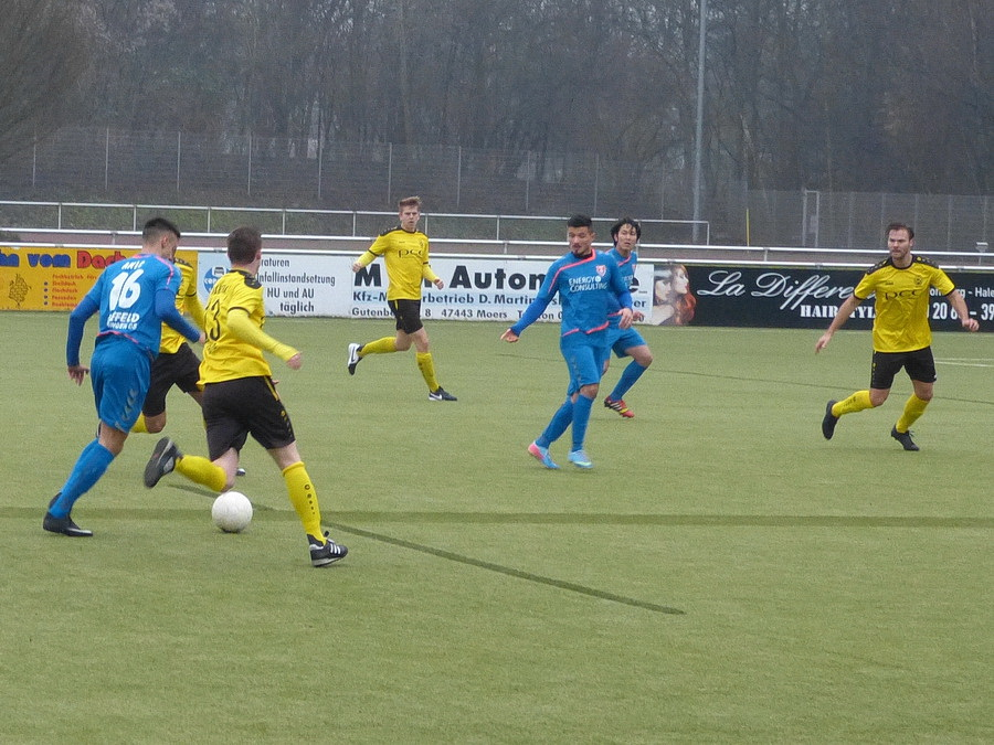 Das erste Vorbereitungsspiel unserer Landesliga-Mannschaft auf die "Restrunde" führte heute den KFC Uerdingen 05 an den Rheindeich, der von unserem Ex-Trainer Michael Boris trainierte Oberligist behielt am Ende mit 2:1 die Oberhand. Über 90 Minuten war ein Klassenunterschied nicht erkennbar, die Gelb-Schwarzen vergaben aber - wie so oft in dieser Saison - zu viele Torgelegenheiten.