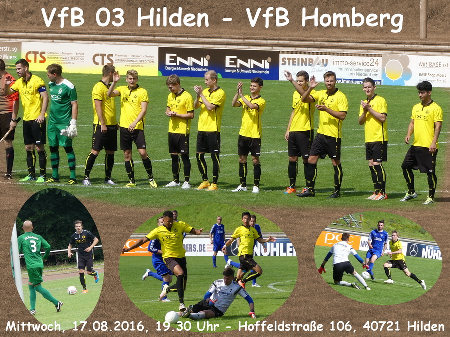 Nach dem gelungenen Auftakt gegen den SC Düsseldorf-West steht für unsere Oberliga-Mannschaft am Mittwoch das erste Auswärtsspiel auf dem Programm. Gastgeber VfB 03 Hilden hat seine erste Partie knapp mit 1:0 bei TuRU Düsseldorf verloren und will gegen den Aufsteiger aus Homberg sicherlich drei Punkte holen. Wenn sich die Gelb-Schwarzen so präsentieren wie am vergangenen Sonntag, dann ist man aber nicht chancenlos - auch wenn in den bisherigen Oberliga-Spielen in Hilden nichts zu holen war...