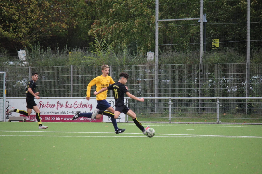 Während der Herbstpause in der Meisterschaft empfing unser Team heute die U18 von Germania Ratingen. Obwohl wir personell auf dem Zahnfleisch gehen (insgesamt sieben Ausfälle) und heute von unserer B2 unterstützt wurden zeigten unsere Jungs insgesamt eine ordentliche Partie. Auch wenn in einigen Situationen die Abstimmung fehlte ließen wir hinten wenig zu und nach vorne zeigten wir einige schöne Spielzüge. Bei konsequenter Chancenverwertung wäre ein noch höherer Sieg möglich gewesen. So endete die Begegnung 5:0 für unsere Mannschaft. Glückwunsch!