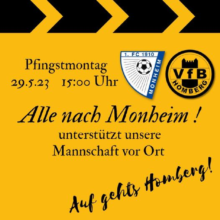 Zum letzten Auswärtsspiel der laufenden Saison reist unsere Oberligamannschaft am Pfingstmontag (29.05.2023) zum 1. FC Monheim, die Begegnung im Rheinstadion ist für beide Mannschaften von enormer Bedeutung. Der VfB Homberg setzt dazu einen Fanbus ein, der mittlerweile ausverkauft ist. ein Teil der Tickets ist bereits verkauft. Solange der Vorrat reicht, können Fahrkarten für den Fanbus in der Gastronomie am PCC-Stadion erworben werden - wir empfehlen "zügiges Zugreifen".